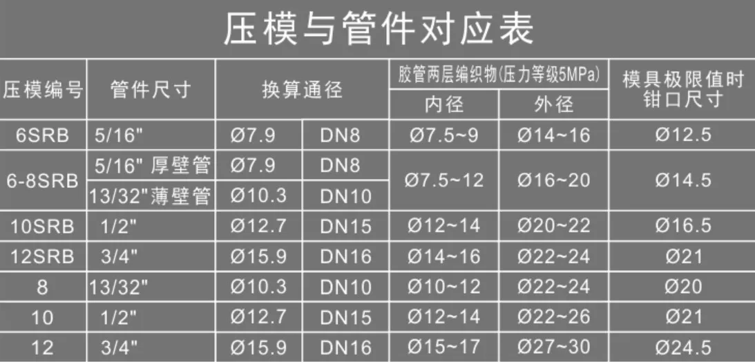 Комплект поставляется с полным набором плашек, покрывающих шланг размером #8, #10, #12 и уменьшенным