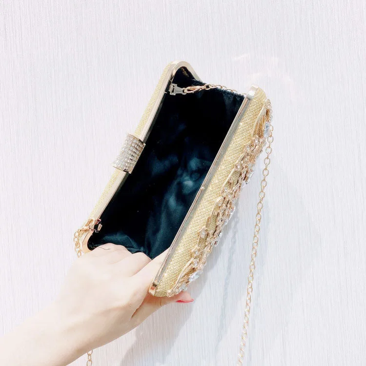 Женские сумки-клатчи с металлическими кристаллами, вечерняя сумка золотистого цвета с цепочкой, сумка на плечо, Женская сумочка, кошелек для свадебной вечеринки, M1388