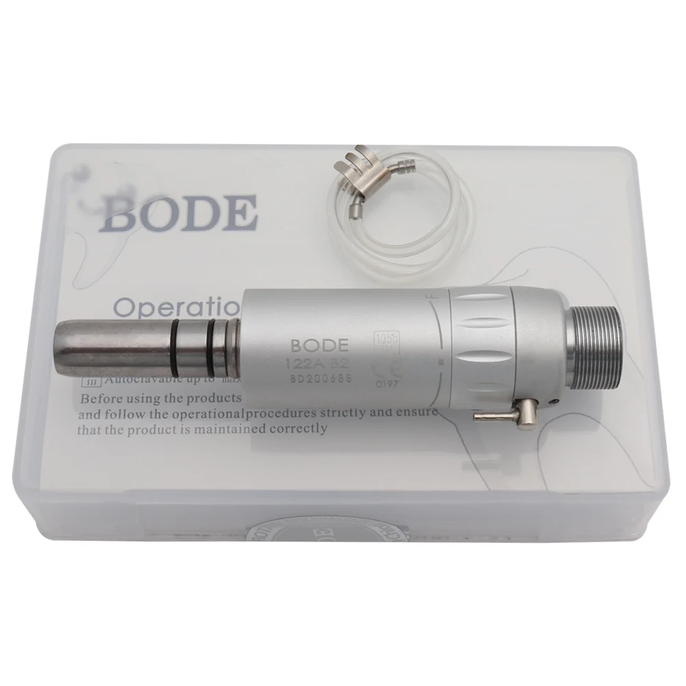 Особенности: Бренд: BODE Тип наконечника: низкоскоростной Воздушный Двигатель Тип распыления: внешний водный спрей Тип патрона: ручной патрон Совместимость шланга: 2 отверстия (Борден) B2 Источник питания: пневматический/Воздушный Давление воздуха: 0,30 МПа-0,35 МПа Скорость вращения: ≥ 18,000р/мин Bur применимо: Φ2.345-2,355 мм Шум: ≤ 70 дБ Предназначение для использования/специализация: стоматологическая лаборатория/стоматология