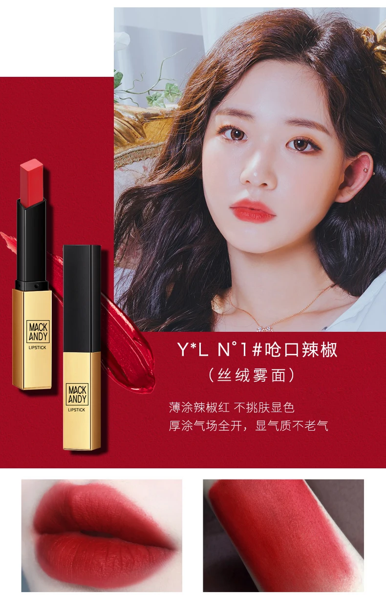 MACK ANDI, сексуальная красная помада томатного цвета, водостойкая, долговечная, тонкая, золотая, легко окрашиваемая, матовая помада AC083