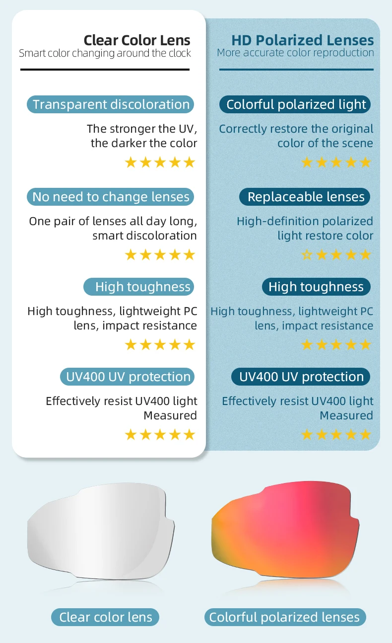 1. Красочное покрытие 2. Поляризованные линзы, светящиеся блики 3. Защита UV 400 4. Регулируемые носоупоры 5. Может быть встроена в рамку для близорукости 6. Сверхлегкий, мягкий и удобный