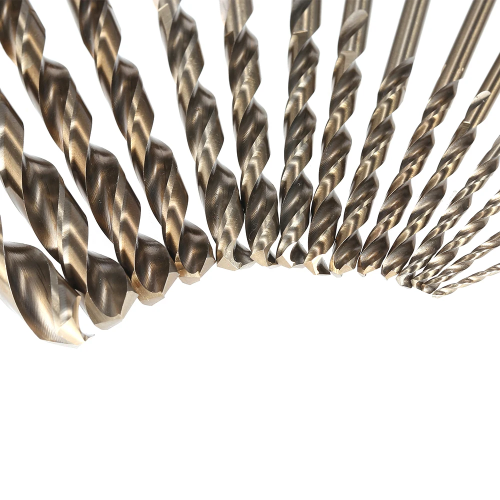 Идеальное кобальтовое высокоскоростное стальное сверло, которое хорошо подходит для сверления металлов и древесины, особенно подходит для тех, кто обладает высокой твердостью стали, таких как нержавеющая сталь. 15 шт различных размеров сверла для удовлетворения различных потребностей вашей буровой работы.
