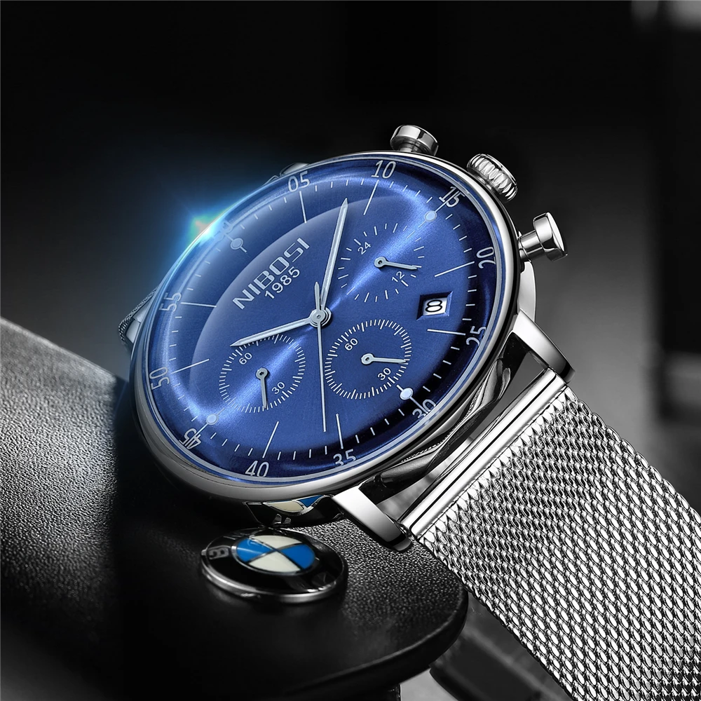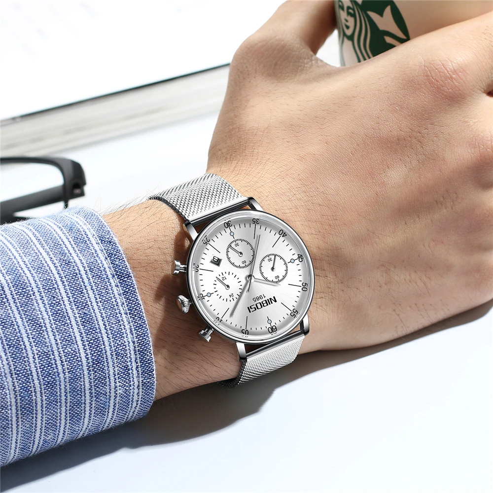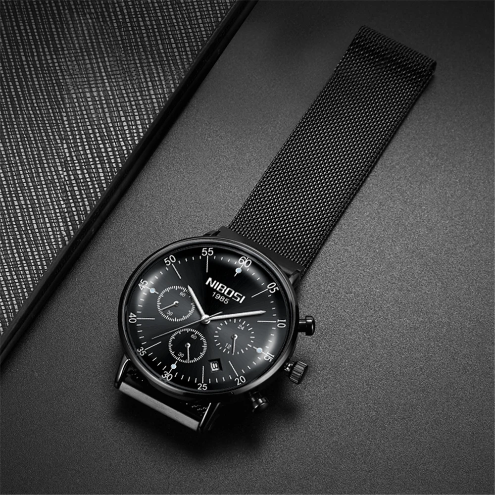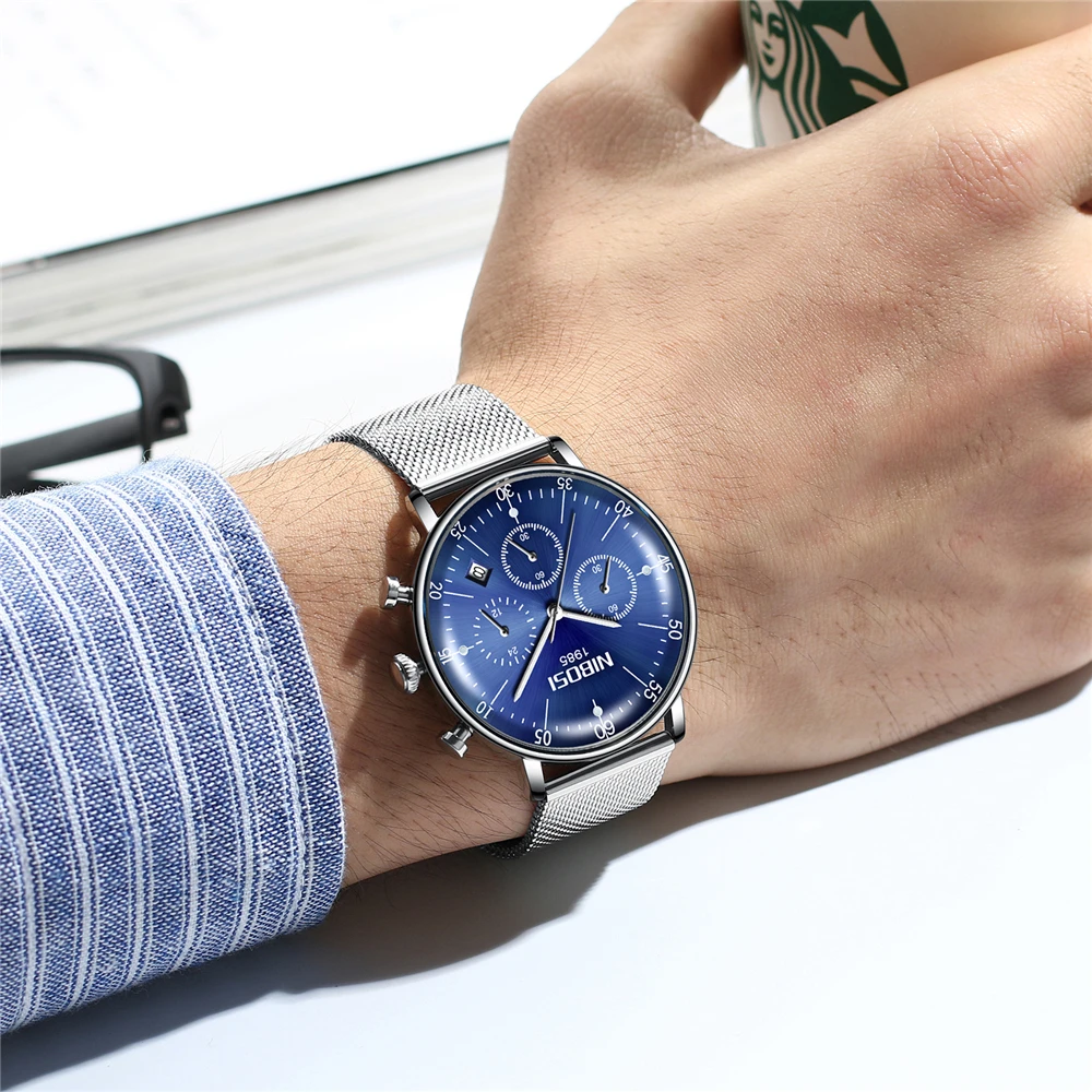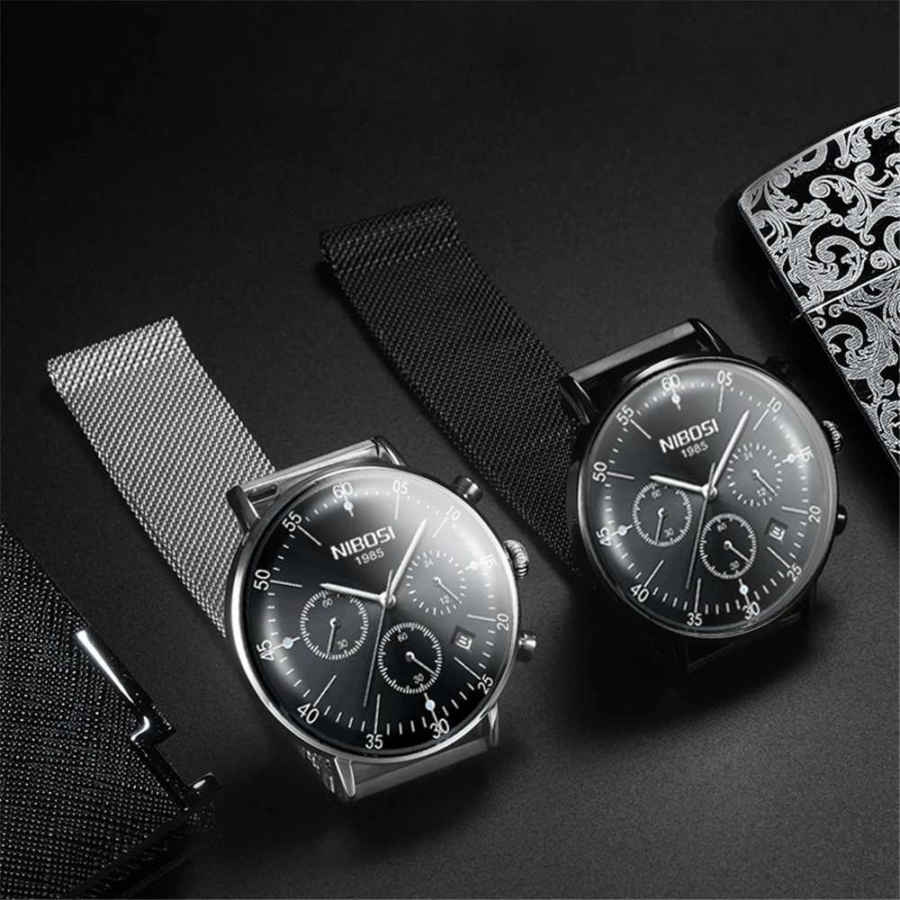 Reloj Hombre 2020 NIBOSI Лидирующий бренд, Роскошные мужские часы, водонепроницаемые ультра тонкие наручные часы для свиданий, мужские повседневные кварцевые часы с сетчатым ремешком