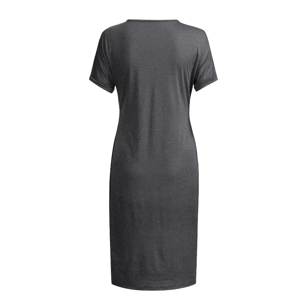 Женское однотонное платье с коротким рукавом и круглым вырезом для беременных