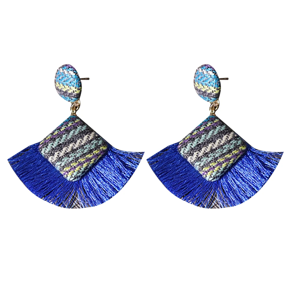 Серьги-гвоздики в стиле ретро с ромбическим веером и бахромой, Женские Ювелирные изделия