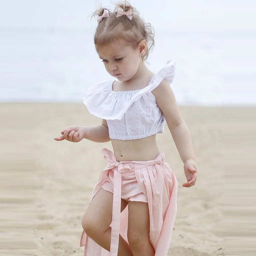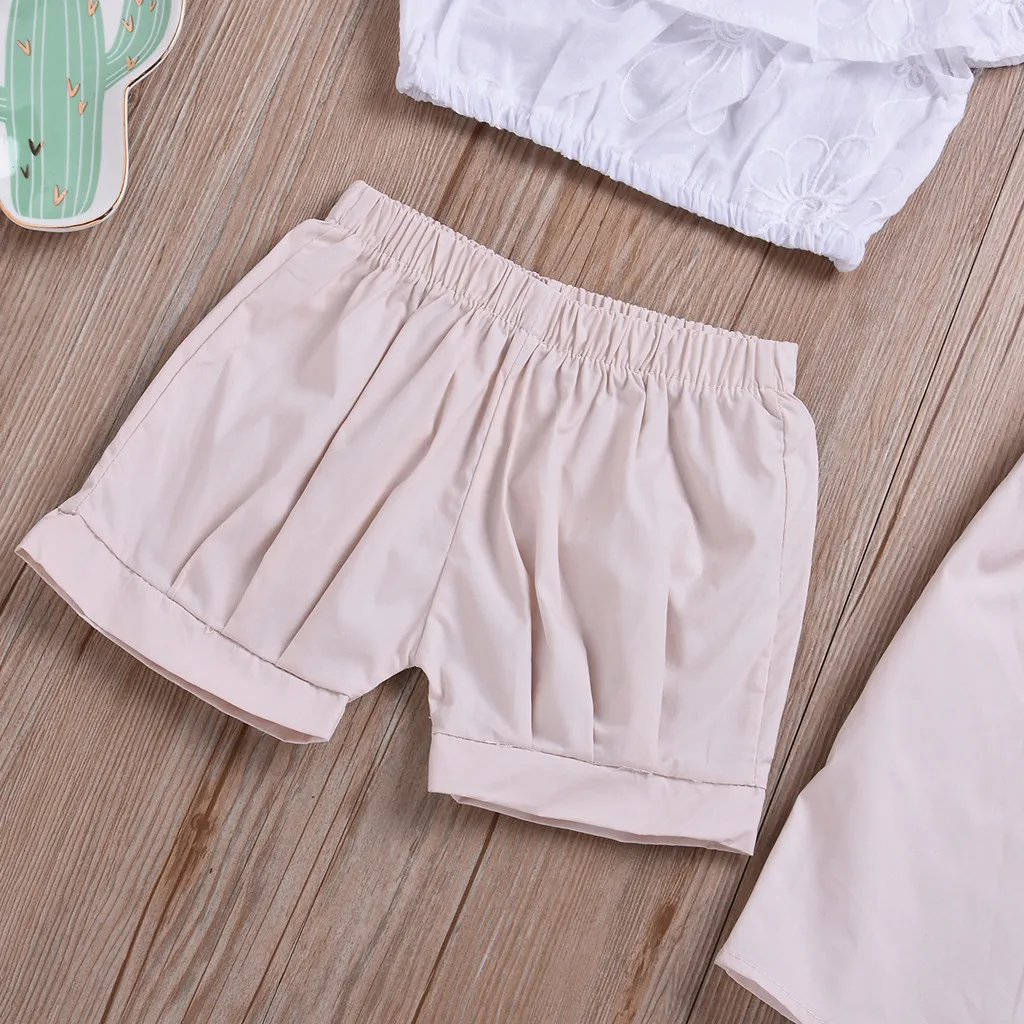 Kids Baby Boys Solid Ruffled Tops Shorts Skirts 3pcs Outfit Clothes Summer