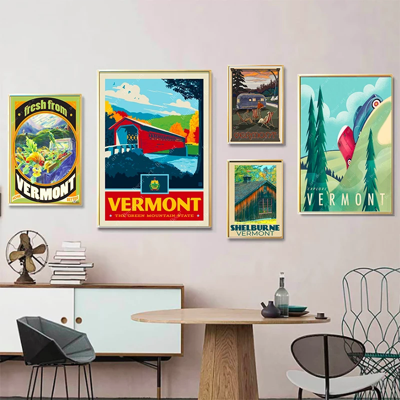 Вермонт Открытый Отдых Америка Винтаж путешествия плакат-карта холст картина плакат из крафт-бумаги с покрытием стикер на стену украшение дома подарок