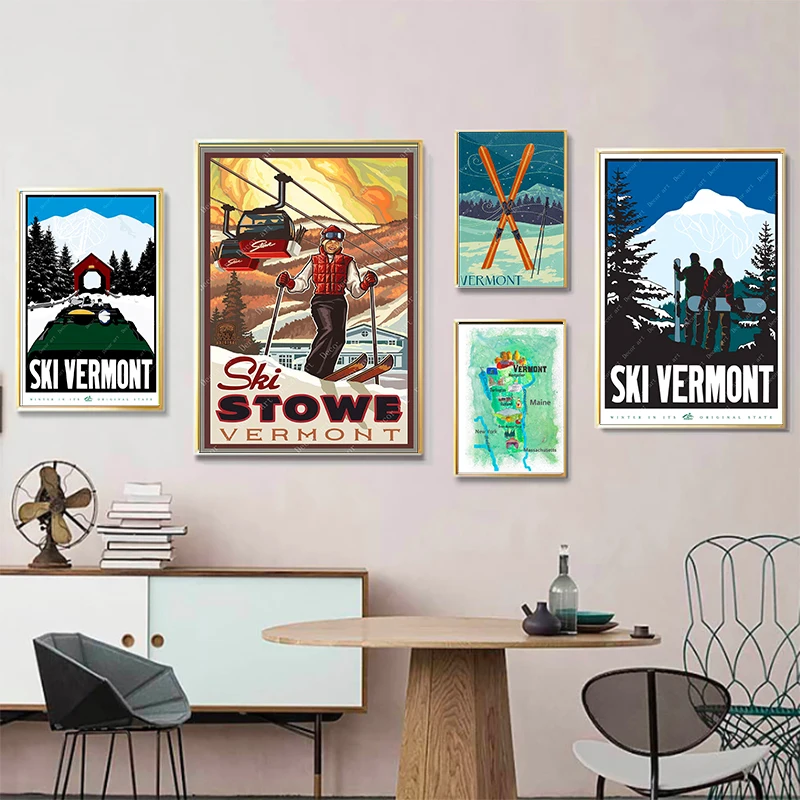 Ski at Vermont America Stowe винтажный дорожный плакат-карта, холст, живопись, плакат из крафт-бумаги, наклейка на стену, украшение для дома, подарок