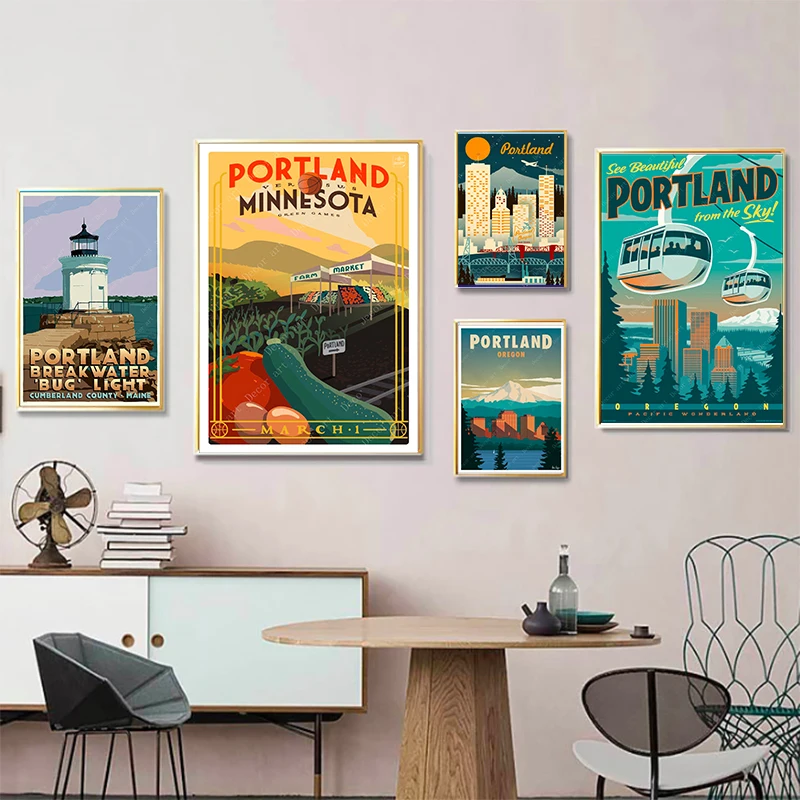 Американский Портланд Мэн винтажные туристические плакаты холст картина плакат из крафт-бумаги с покрытием стикер на стену украшение дома подарок