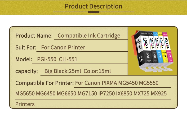 Совместимый картридж PGI 550 550XL для Canon PIXMA IP7250