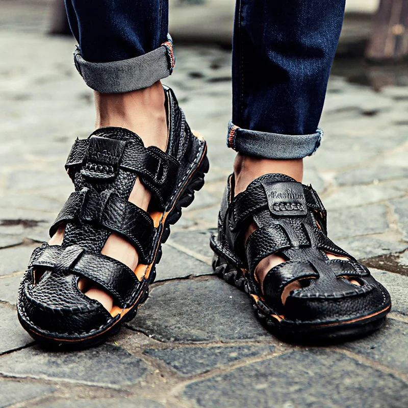 Мужские кожаные повседневные сандалии размера плюс 48, мужские сандалии для пеших прогулок, резиновая подошва, ручная работа, Sandalias Hombre, летняя обувь