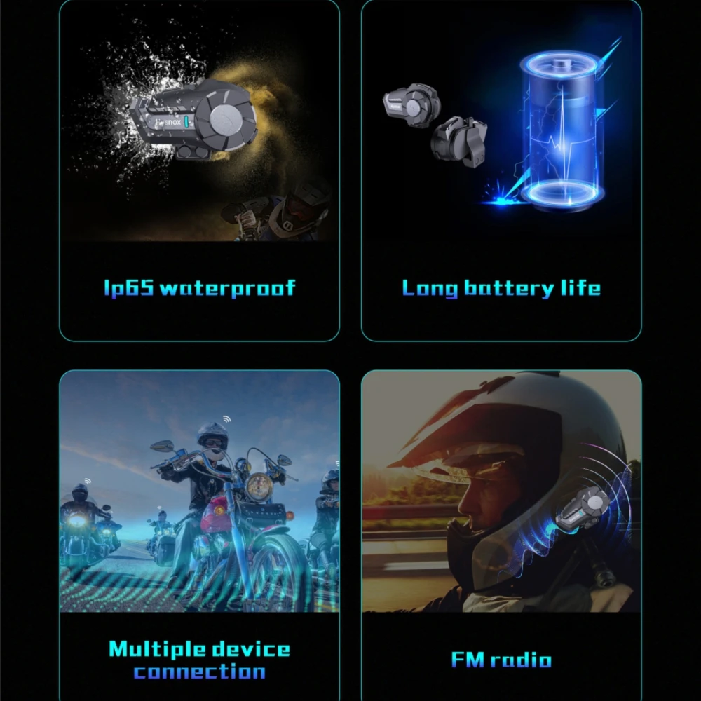 (4) Он может подключаться к шлему и общаться с bluetooth-гарнитурой на рынке; Он может переключаться между звонком на мобильный телефон, домофоном, стерео музыкой и fm-радио по желанию