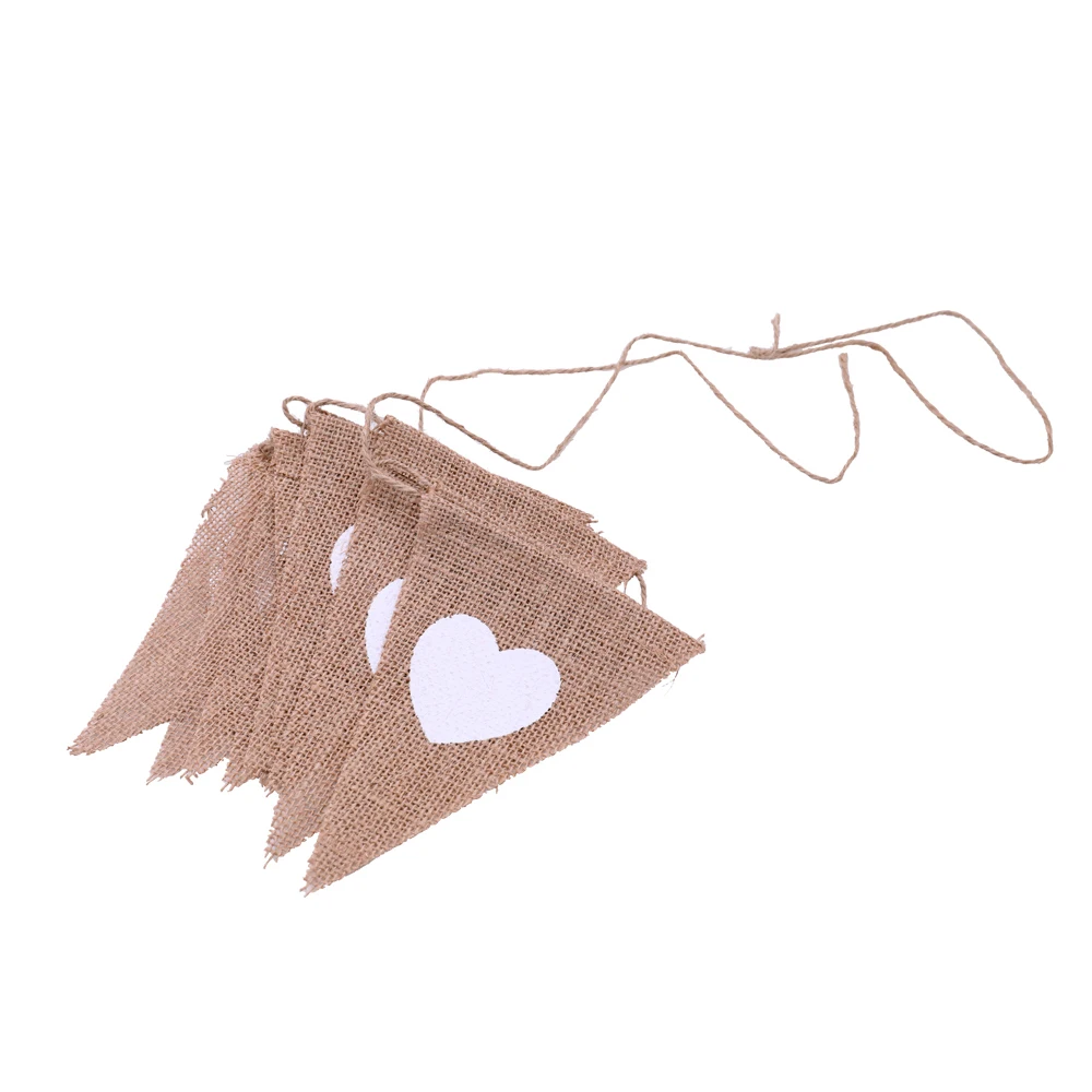 13 шт. свадебное украшение Лен треугольный флаг Растяжка сердце флаг льняная ткань баннеры венок из джутовой веревки юбилейные праздничные баннеры
