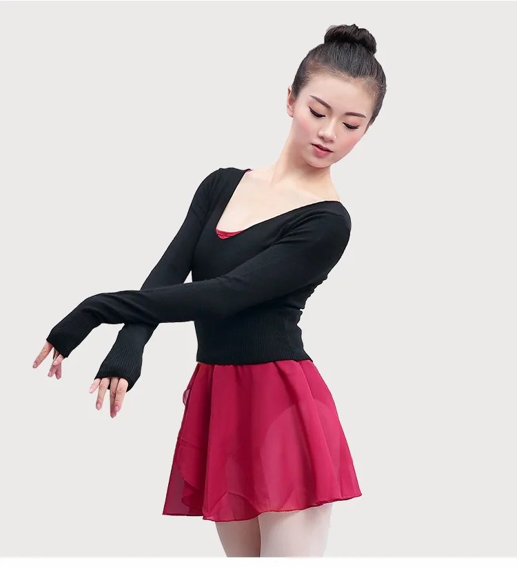Балетный Топ, Осень-зима, v-образный вырез, высокая талия, танцевальный Топ, балетный танцевальный свитер, пальто для девочек, женские танцевальные топы с длинными рукавами, для взрослых дам