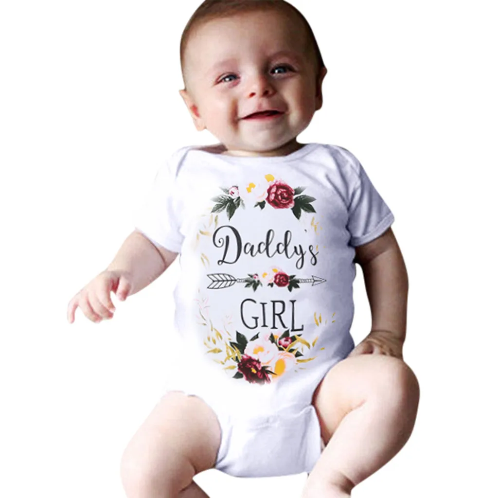 Комбинезон с цветочным принтом и надписью для новорожденных и маленьких девочек; Боди; Одежда