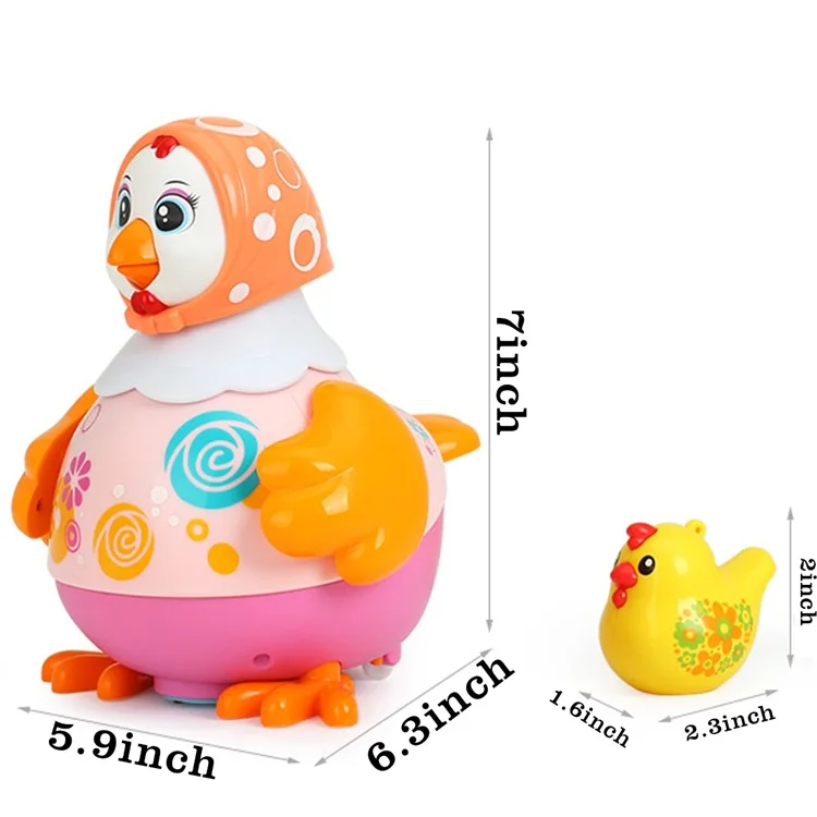 Танцующая курица: 15*16*18 см Цыпленок: 4*6*5 см Батарея: 3*1,5 V AA Батарея (не входит в комплект)