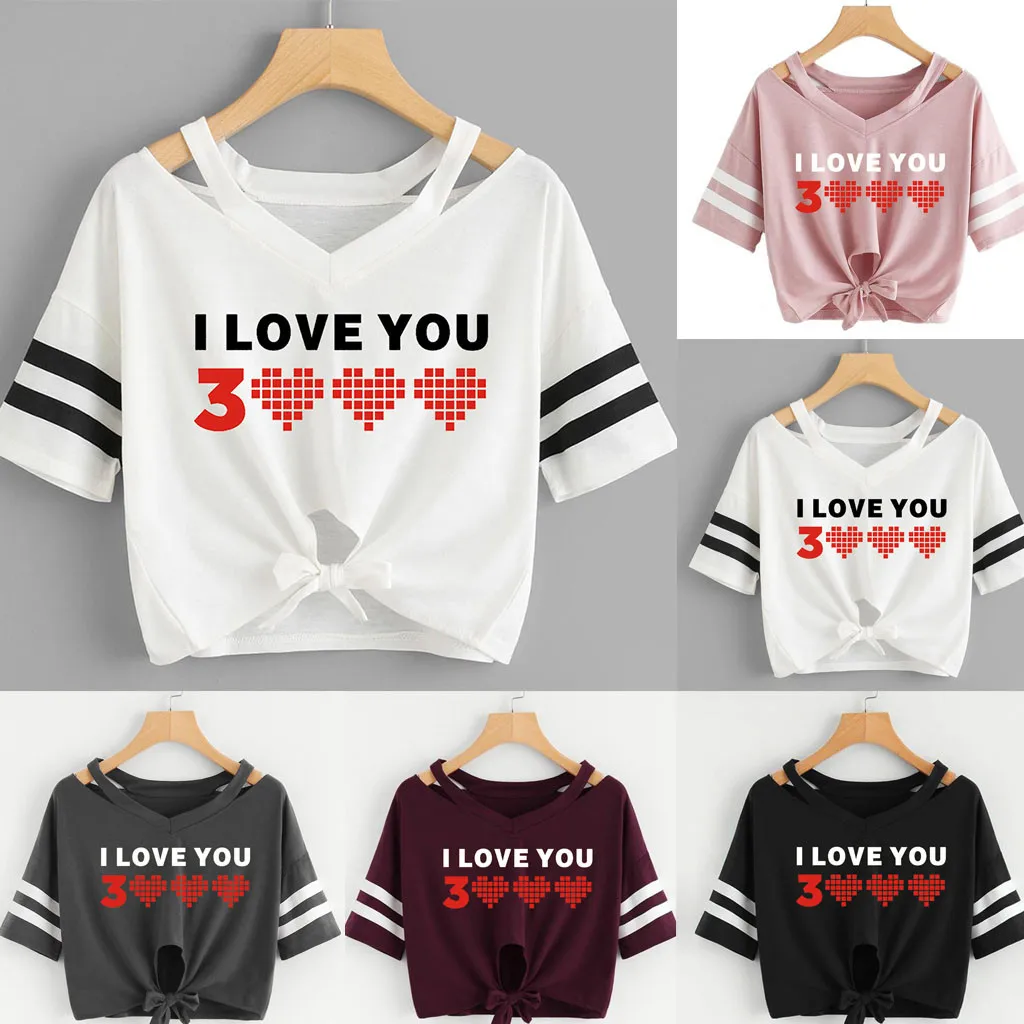 Женская короткая футболка с принтом I Love You 3000 раз, Повседневная Блузка с коротким рукавом