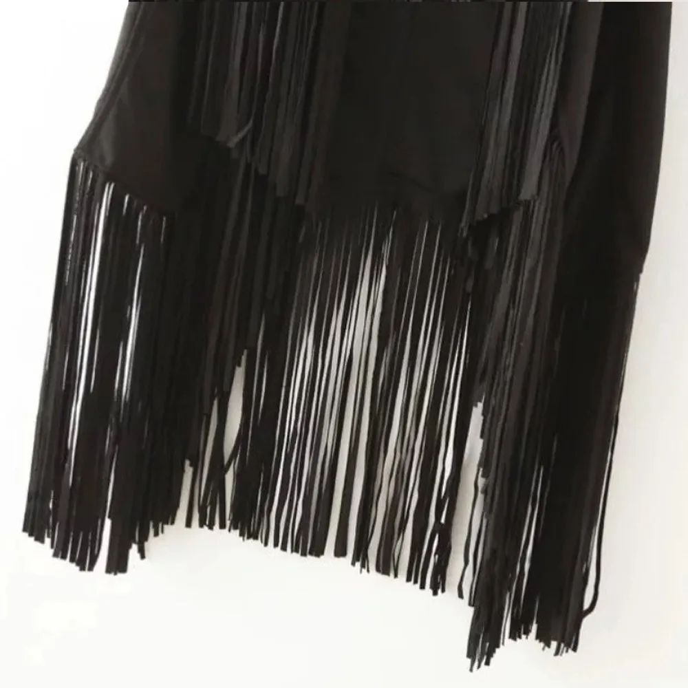 Женский осенне-зимний замшевый кардиган с бахромой без рукавов в этническом стиле