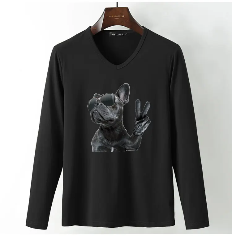 Модная Рок Мужская футболка, одежда, хип-хоп футболки, топы с длинным рукавом, черно-белая собака, принт с животными, Забавные футболки, Poleras Hombre