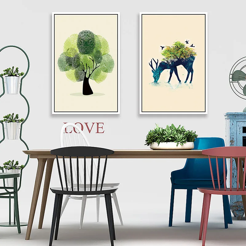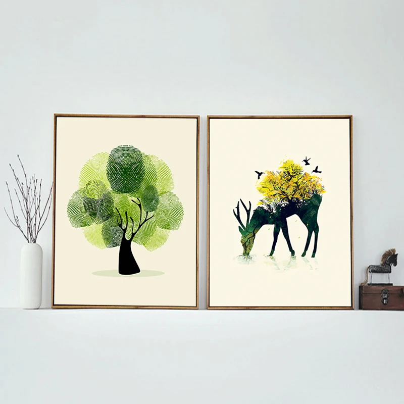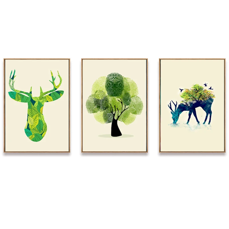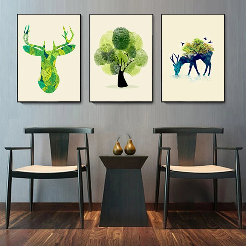 Зеленое растение для гостиной, Акварельные картины, искусство на стену, лось, без рамки, декоративная основа, 1 шт., Современная