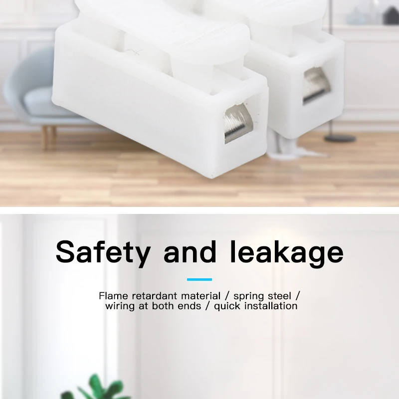 Особенности Быстрой проводки Бесплатные Винты для сверления, увеличение скорости сборки Может полностью заменить электрическую ленту Экономия затрат Быстрая. Эффективная и безопасная Область применения: светодиодный потолочный светильник, специальный зажим проводки Параметры Материал: огнестойкий пластик Материал тростника: Марганцевый Стальной Лист Цвет: белый Напряжение: 220V • Сила тока: 10A Чипы: 2/3 Температура: от-40 до 150 градусов Цельсия Проводка: проводки емкостью от 0,5-2,5 проволока прямоугольного сечения