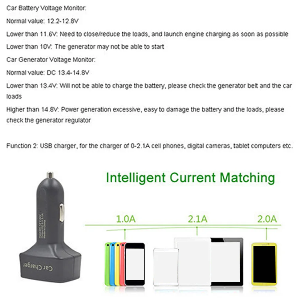 4 в 1 Dual USB DC 5V 3.1A Универсальный Автомобильный Зарядное устройство адаптер с Напряжение/температура/измеритель тока тестер цифровой светодиодный Дисплей