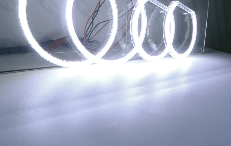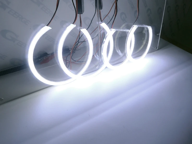 Этот набор включает в себя абсолютно новые, 4 шт набор ксеноновых холодных белых COB LED angel eye halo кольца, это хорошо для пользовательской модернизации фар.