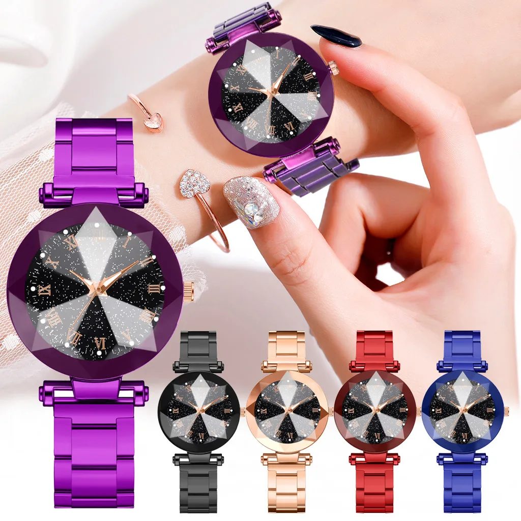 Крутые многоугольные Модные Простые кварцевые часы с циферблатом звездного неба