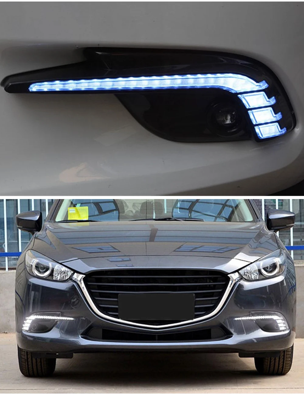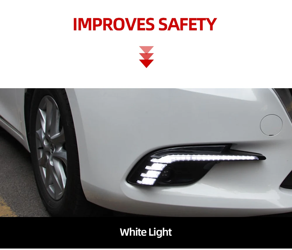 Когда вы едете прямо, он загорается белым. Когда вы включите его Мигающий Желтый светильник.