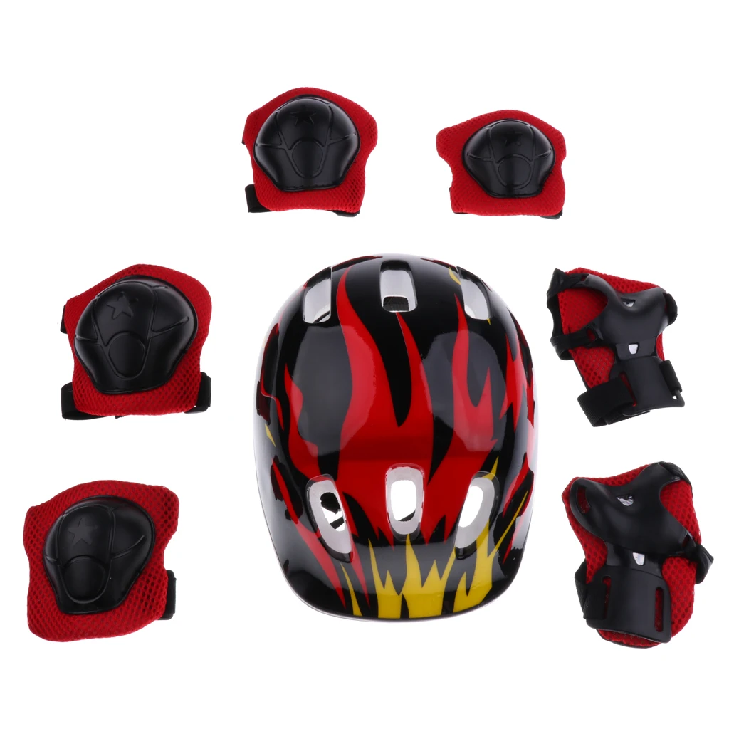 7 шт., защитные шлемы, налокотники, наколенники и запястья, комплекты для детей 3-12 лет