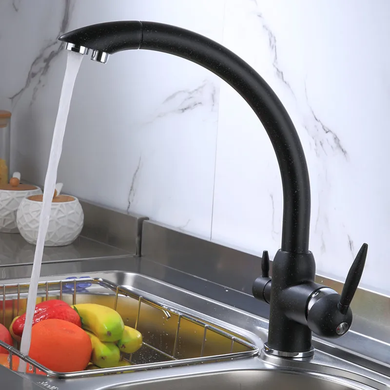 Описание продукта: Функция: кухонный фильтр для очистки воды кран для раковины Материал: твердая латунь; Отделка: черный/хромированная отделка Количество ручек: 2 Специальные Особенности; Тихий близко, легко установить