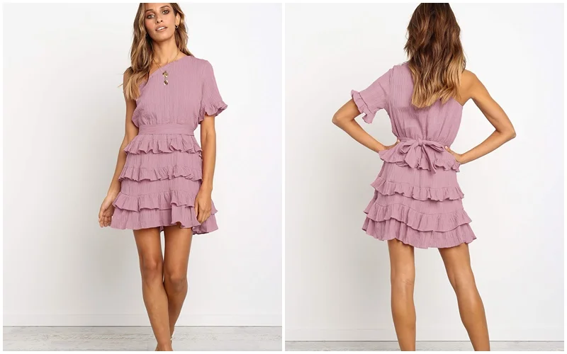 Женское платье с оборками Yojoceli, Летнее мини-платье на одно плечо с бантом, 2019