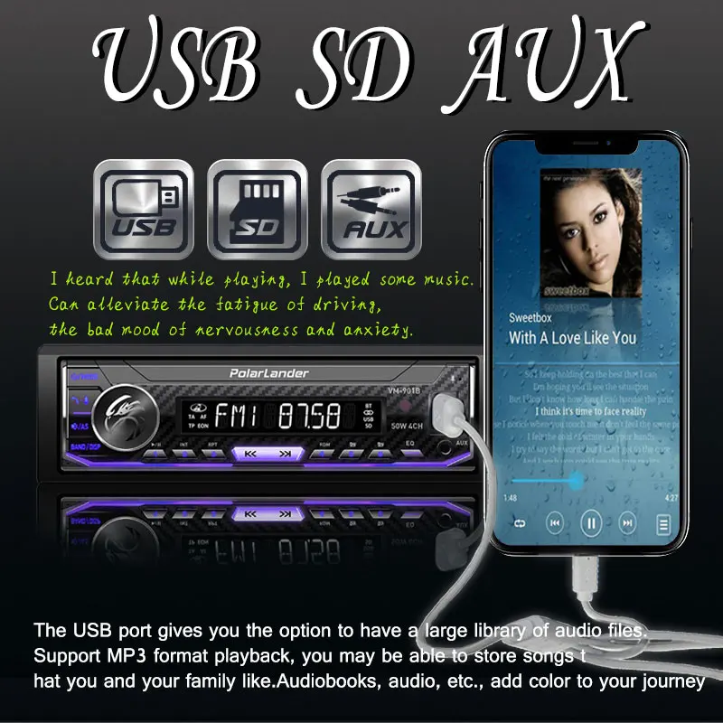 ·Входы USB/SD:Usb-порт дает вам возможность иметь обширную библиотека аудио файлов на кончиках ваших пальцев.
