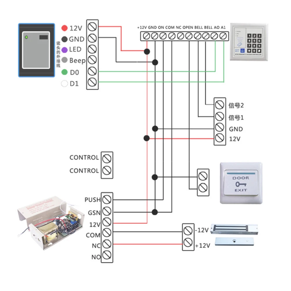 Красный DC 12V Черный GND Зеленый D0 Белый D1 Синий светодиодный Желтый звуковой сигнал