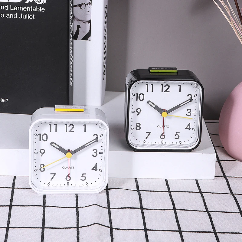 Квадратный маленький будильник без тиков прикроватный светодиодный светильник тихий будильник таймер Повтор часы для путешествий домашний декорUS $5,25