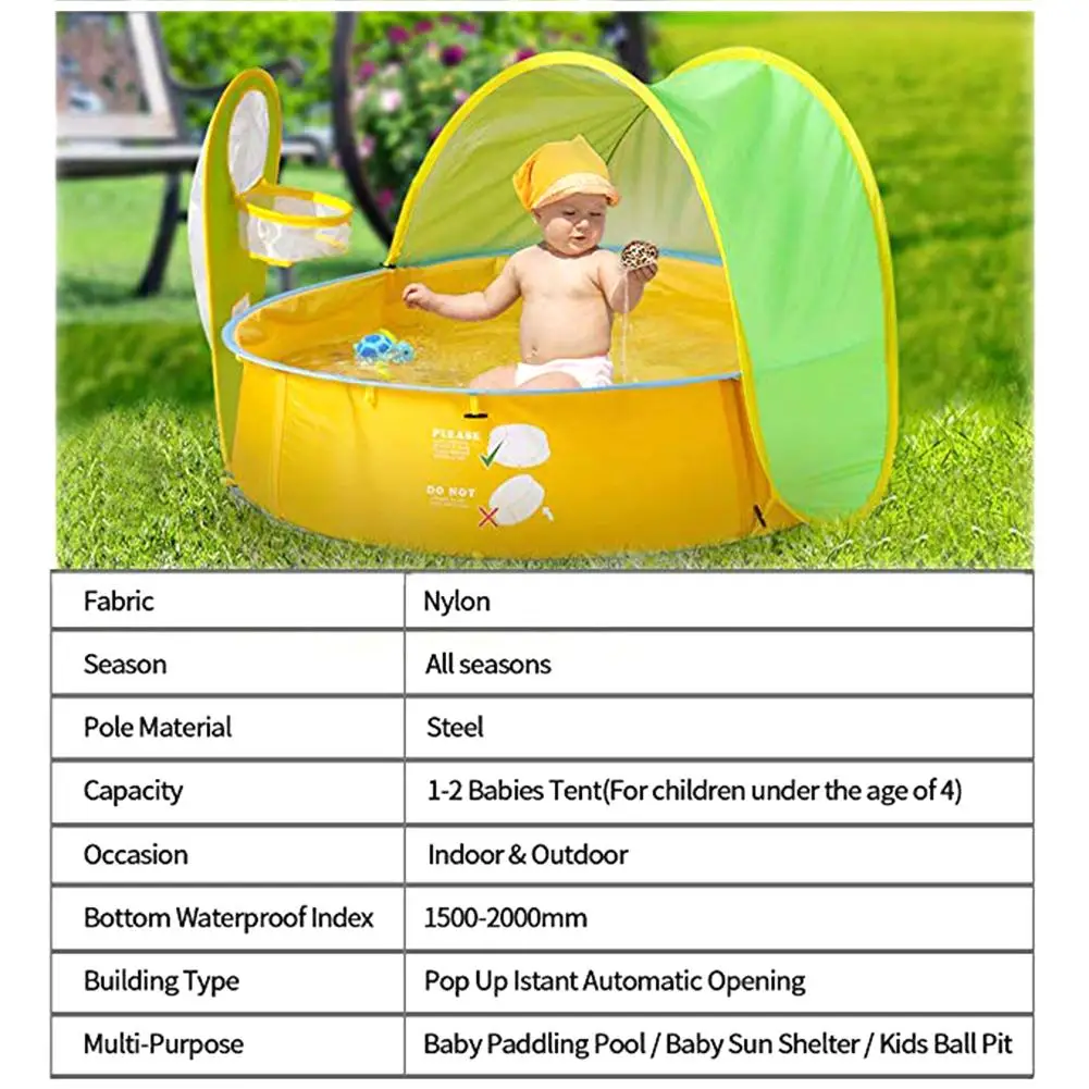 Пункты маркированного списка:1. Мгновенное открытие-наши Всплывающие Детские Палатки Легко установить и сложить. С компактной сумкой, вы можете взять его с собой в помещении/на открытом воздухе/Кемпинг/сад/путешествия. Размер корпуса: 19 дюймов x 16 дюймов (49 см x 40 см)2. детский дизайн-легче, чем Пенящийся бассейн! Он изготовлен из водонепроницаемого материала и может использоваться в качестве бассейна для детей. Вставьте воду в бассейн. Охладите своего ребенка в жаркий день. Создайте игровую площадка для вашего ребенка.3. Детская Чаша игра палатка дизайн-с треугольник для шаров, ваш ребенок может играть в бассейне. Пусть они будут веселее в помещении или на открытом воздухе. Придайте больше преимуществ физическим упражнениям и связям родителей и ребенка.4. детский солнцезащитный тент-с дизайном защиты от солнца, вам не нужно снимать шторы. Не допускайте попадания на вашего ребенка сильного солнечного света во время охлаждения в жаркие дни. Очень прохлада и прохлада в дождь.5. В комплект входит-1 тент для детей с бассейном; 1 сумка-тоут (Размер сумки: 48,26 см x 40,64 см)Описание:Детская Пляжная палатка, детский бассейн, тент с защитой от ультрафиолета, детский Крытый и открытый детский парк развлеченийЛегче, чем Пенящийся бассейн; складной в сумочку; пляжный и внутренний.Особенности:1. Есть солнцезащитный отсек-всплывающий детский бассейн, чтобы лучше защитить вашего ребенка от солнечных лучей. Если вам это не нужно, снимите солнцезащитный козырек.2. в нижней части бассейна, вы можете дать вашему ребенку играть в воде, а не на пляж.3. Высококачественная ткань Оксфорд, чтобы ваш ребенок не был на солнце.4. Включает в себя-1 тент для детей с бассейном; 1 сумка-тоутПараметры:Название продукта: Детский бассейнМодель: UR61009Материал: 190 T полиэстер + посеребренныйРазмер изделия: около 102*96*78 см/40,16*37,80 * 30.71inВес: около 1,1 кгСтроительство: Бесплатная скорость строительстваСтруктура палатки: Однослойная палаткаУровень защиты от солнца: UV 50 +Аксессуары: треугольник для шаров, бассейна, тента (за исключением шарик водорослей)Упаковка: нейлоновая сумка + сумкаИнформация об упаковке (прибл.):Один посылка Размеры: 40*38*3,5 см/15,75*14,96 * 1.38inМалый размер бассейна: 94*25 см/37,01 * 9.84inОдна сумка: тканевая сумка + PE Экспресс-сумкаОдин вес: около 0,5 кг (включая полиэтиленовый пакет)Размер нижней части бассейна: прибл. 37 дюймов * 9,8 дюймов (94 см * 25 см); размер крышки лампы: 25,5 дюймов * 14,9 дюймов (65 см * 38 см); Размер шарового кронштейна: 14,3 дюймов * 30,3 дюймов (36,5 см * 77 см)Комплектация:1 * Детский тент с бассейном 1 * сумка