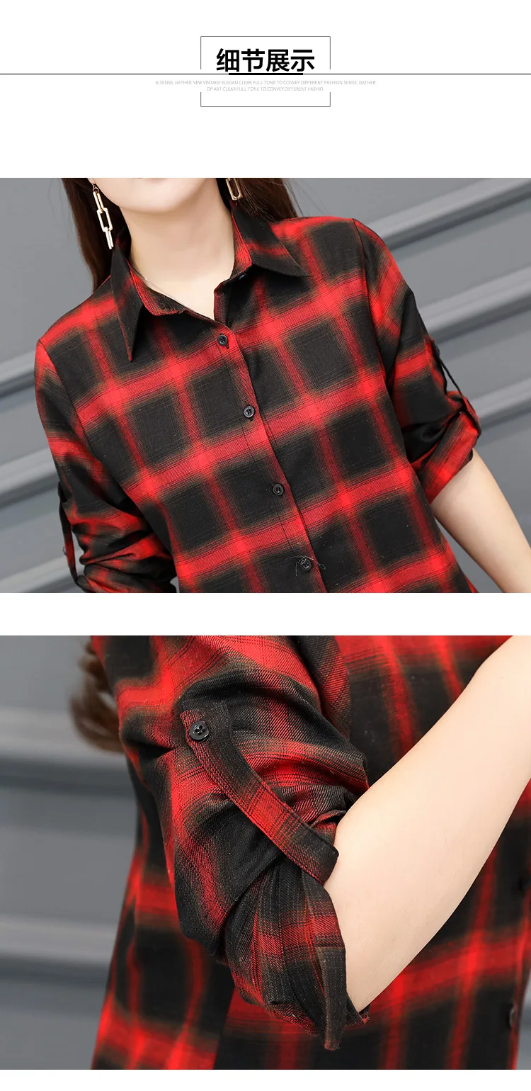 Корейская красная клетчатая блузка, Женская винтажная рубашка с длинным рукавом, Женская Осенняя длинная рубашка, женские модные топы, кардиган, одежда