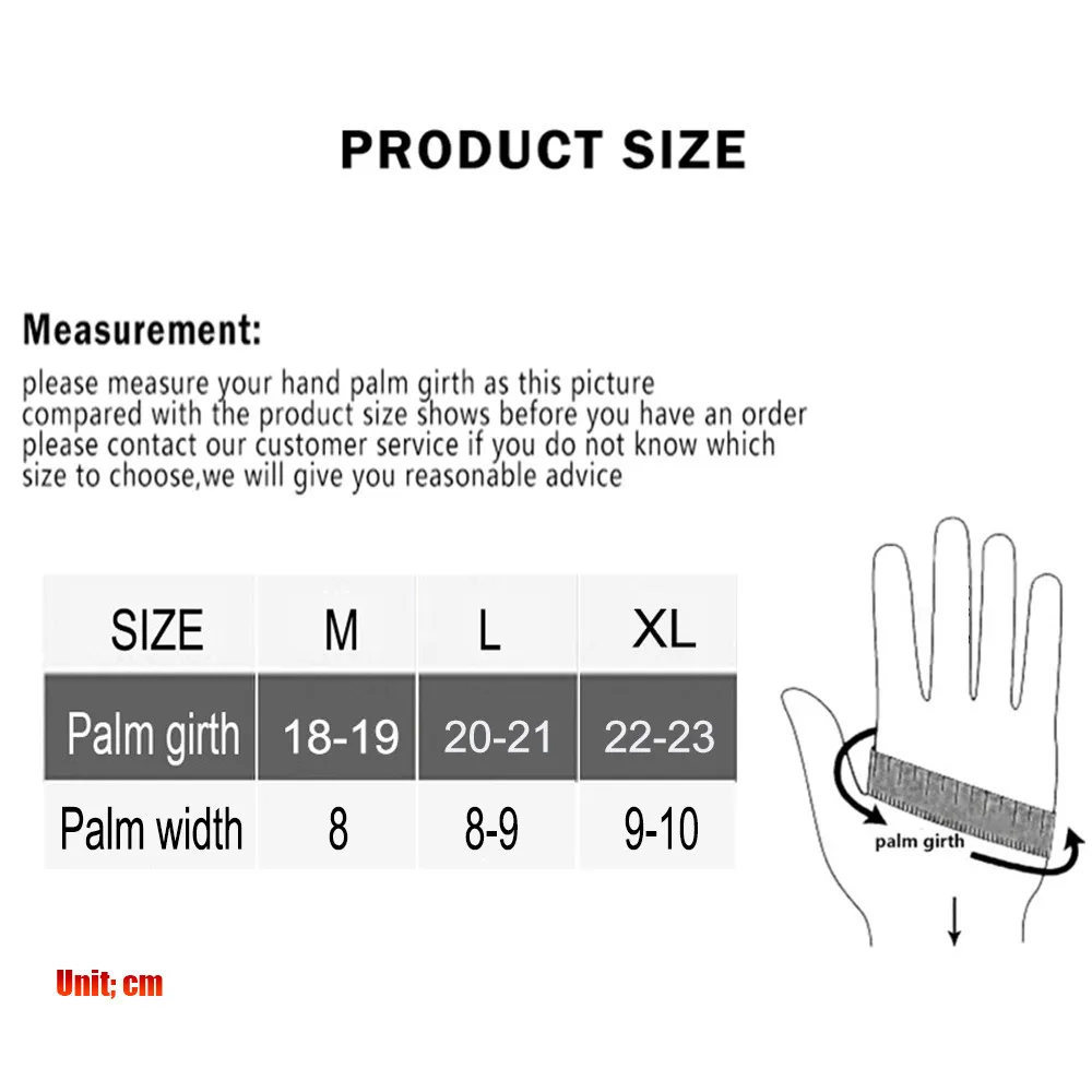 Размеры Обхват ладони М 18-19 см/7,1-7,5'' L 20-21 см/7,9-8,3'' XL 22-23 см/8,7-9,1''