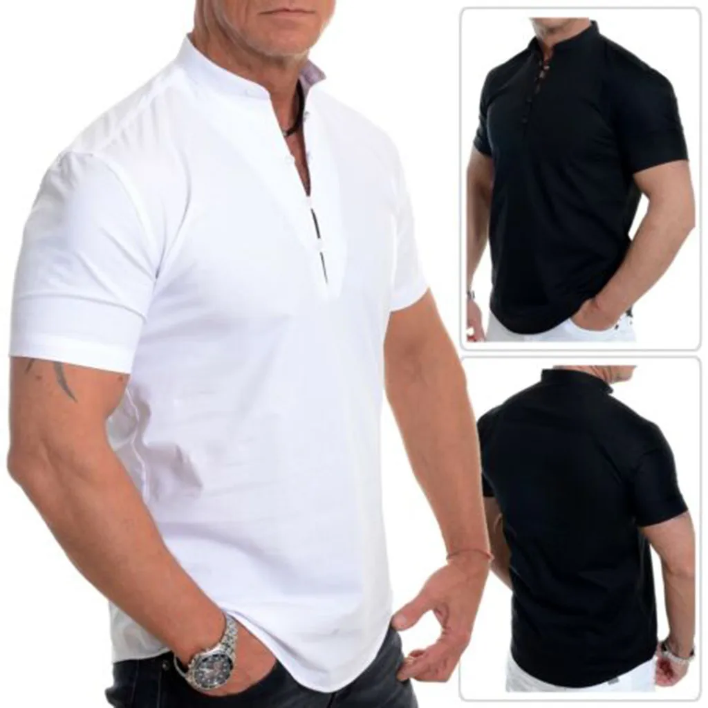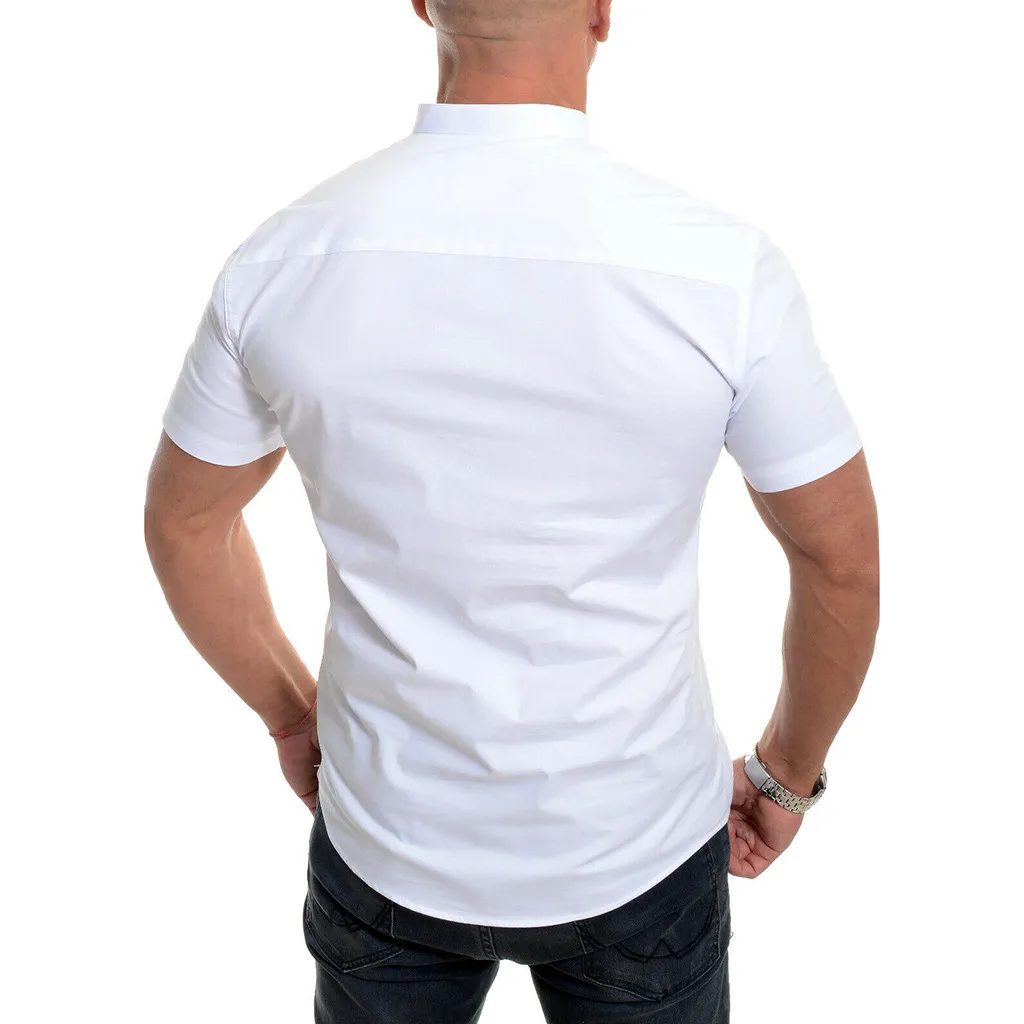 Мужская рубашка с коротким рукавом, белая и черная хлопковая блузка с отложным воротником и петлями