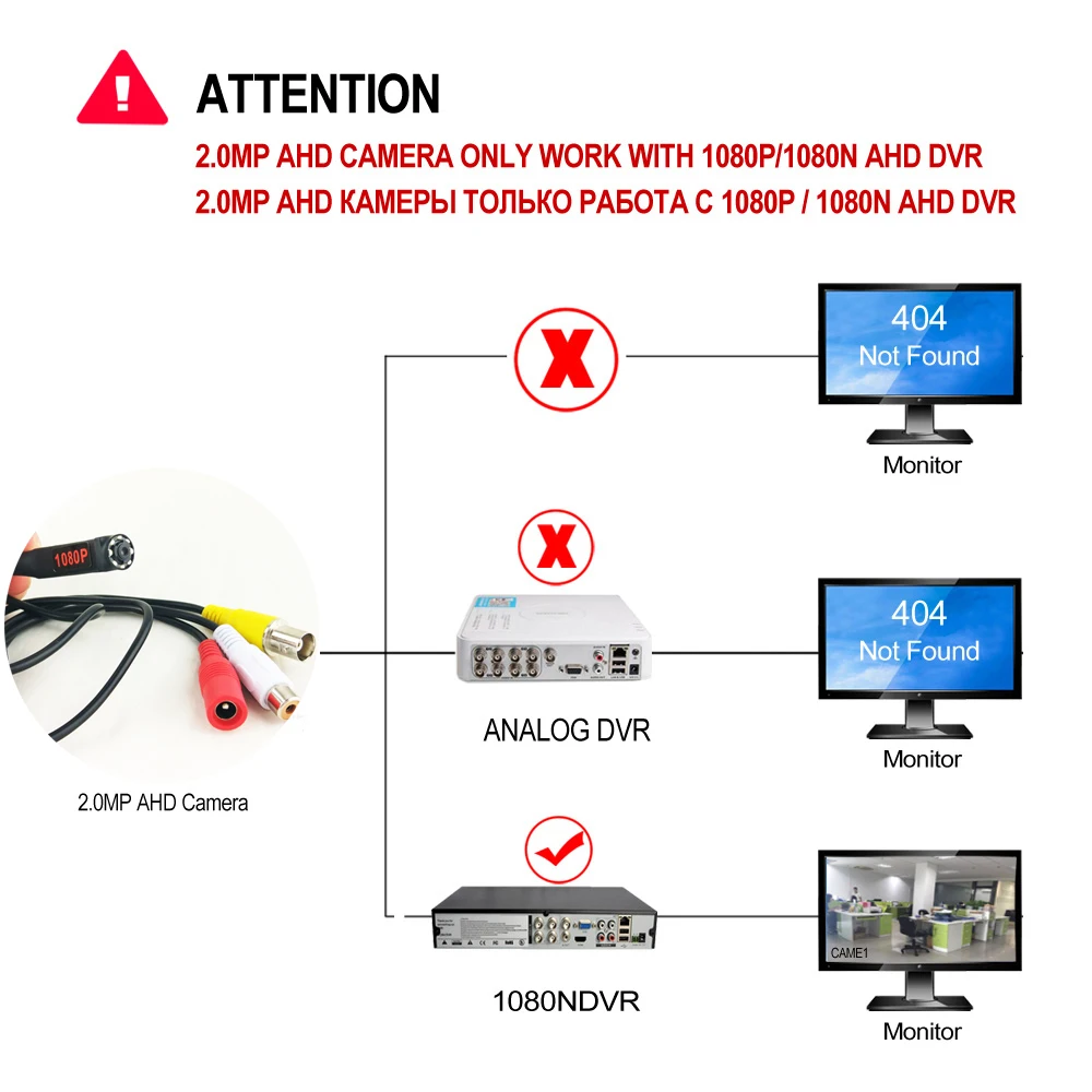 TЕго AHD камера не может подключаться к монитору/телевизору напрямую, пожалуйста, свяжитесь с нами.