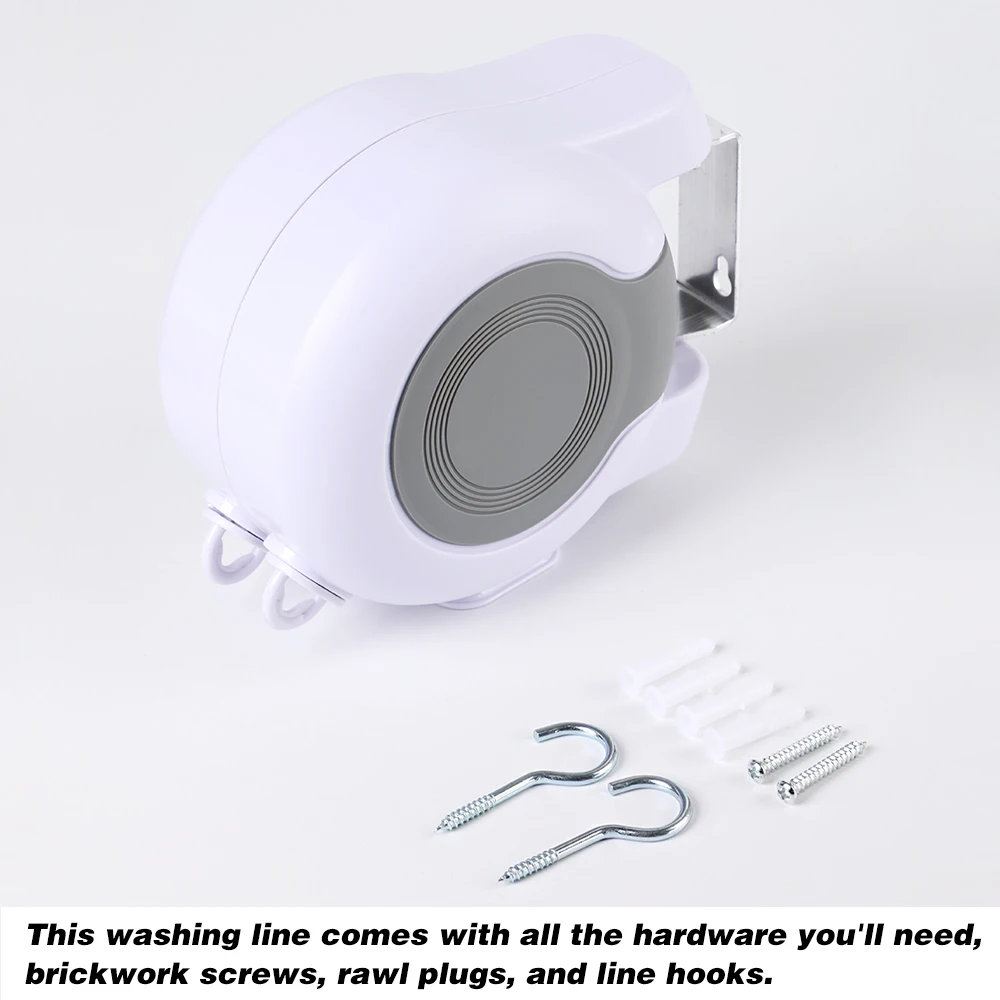 Упаковка включает в себя: 1 двойная стиральная линия, 2 стеновых винта, 2 настенных крючка, 4 вилок