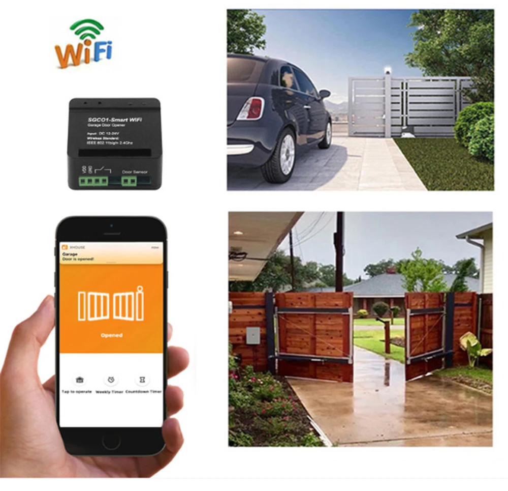 Загрузите модуль Wi-Fi, вы можете управлять открыванием двери непосредственно на мобильный телефон в приложении. Дистанционное управление, не ограничено расстоянием, необходимо убедиться, что устройство подключено к сети, поддержка беспроводной сети 2,4G