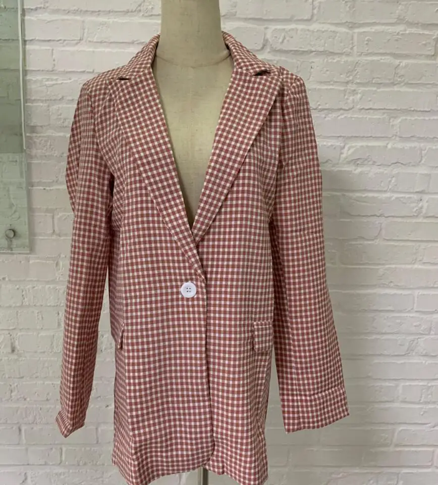 Размер: L, M, S Цвет: Розовый Материал: Хлопок, полиэстер Стиль: Повседневная одежда Украшение: Нет Длина рукава: Полный Длина одежды: Длинный Тип застежки: Одна кнопка Тип узора: Плед Воротник: Зубчатый С капюшоном: Нет Место происхождения: Китай (материк) Отправка из: Китай