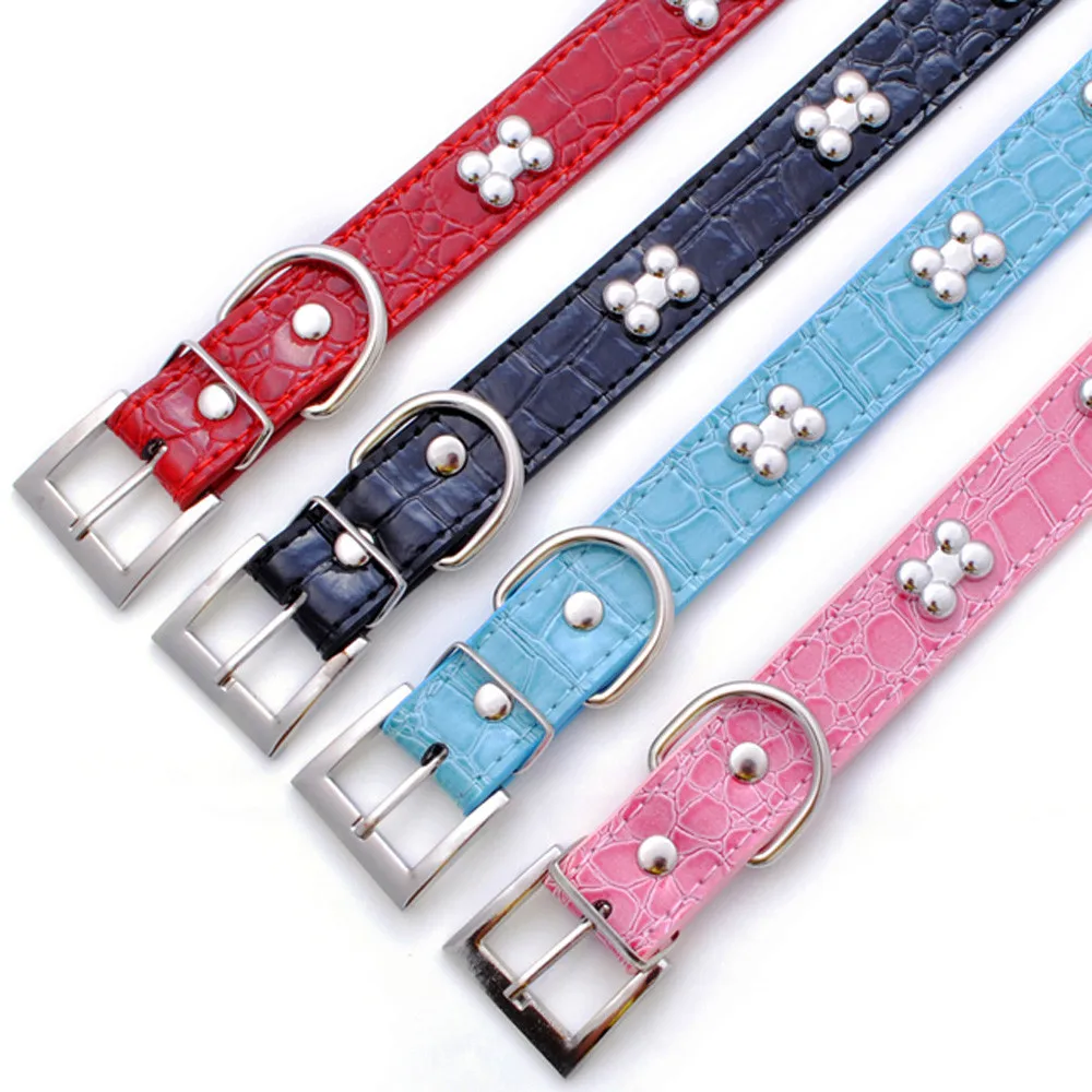 Многоцветная Высококачественная кожаная Изысканная изящная Регулируемая пряжка, металлическая кость, собака, щенок, надежный ошейник # LC