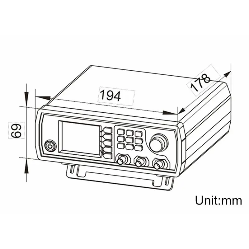 Принять 320*240 2,4 дюймовый TFT цветной ЖК-дисплей, одновременно отображать параметры CH1 и ch2.способность воспроизводить шаблоны пользовательской формы волны. Используйте мягкие силиконовые клавиши вместо традиционных патч-ключей, высокая чувствительность и удобство в эксплуатации. Модель, продаваемая по этой ссылке, составляет JDS6600-60M, максимальная частота синусоидальной волны-60 МГц, а максимальная квадратная волна-25 МГц, Частота дискретизации 266MSa/s и вертикальное разрешение 14 бит.