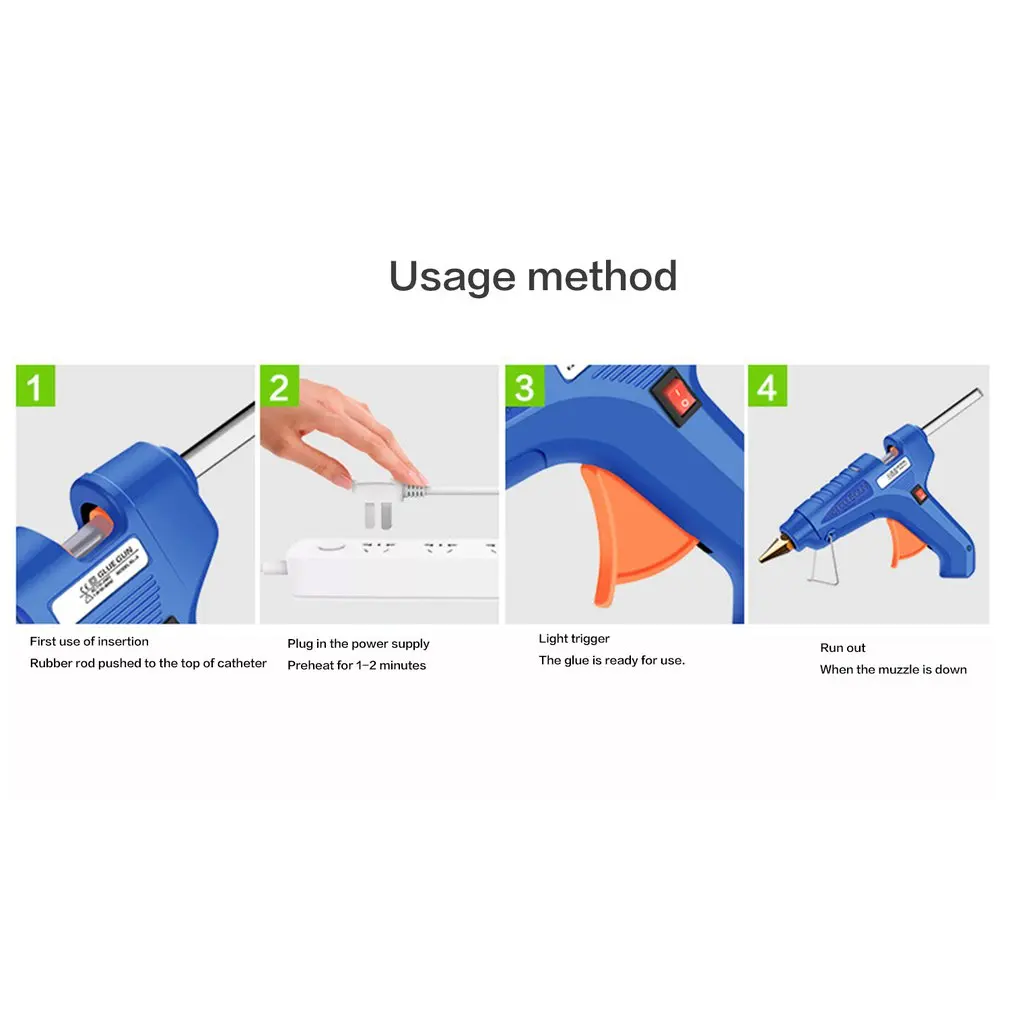 1. Высококачественный клеевой пистолет, Керамический PTC термочувствительный оригинальный, высокотемпературный Противоскользящий пластиковый корпус.