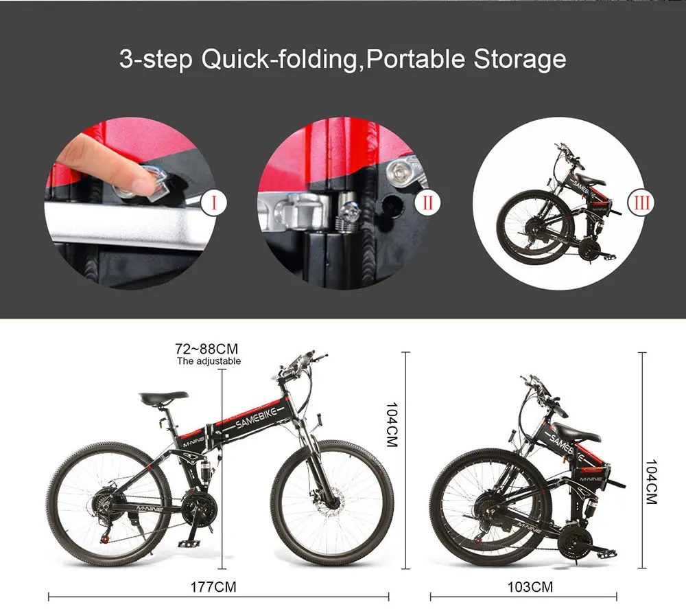 Идеально подходит для путешествий или бездорожья. Складной электрический велосипед SAMEBIKE LO25 поставляется с 3 режимами, включая педаль, педаль и дроссельную заслонку. Полный заряд аккумулятора 48 в 10 Ач дает пользователям 35-45 км (22-28 миль) в режиме дроссельной заслонки и 45-100 км (28-62 миль) в режиме помощи педали. Сложите алюминиевую раму и носите ее удобно, куда бы вы ни отправились. Пользователи могут даже заряжать свой телефон на ходу. Поместите телефон на подставку, прикрепленную к рулю (подходит для большинства смартфонов), и подключите его к зарядному разъему USB 2,0.