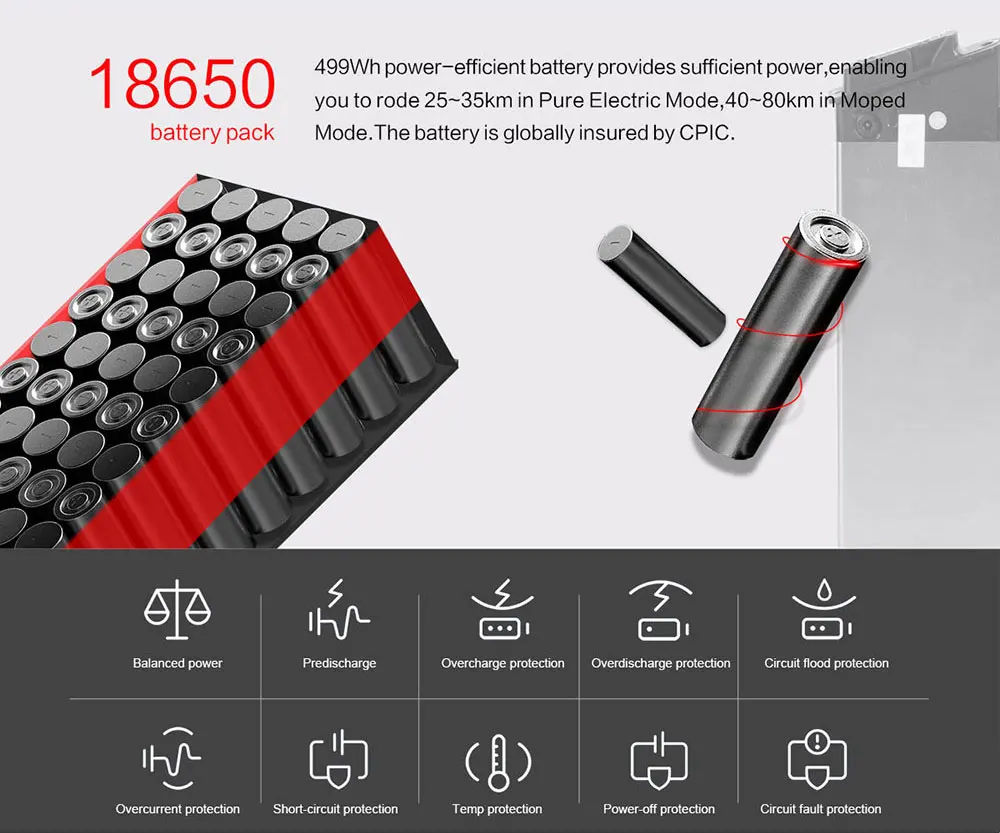 Съемный 48В 10.4ачЛитиевая батарея:Одна перезарядка поддерживает максимальный пробег 30-40 км в чистом электрическом режиме и максимальный пробег 40-80 км в режиме помощи педалям.