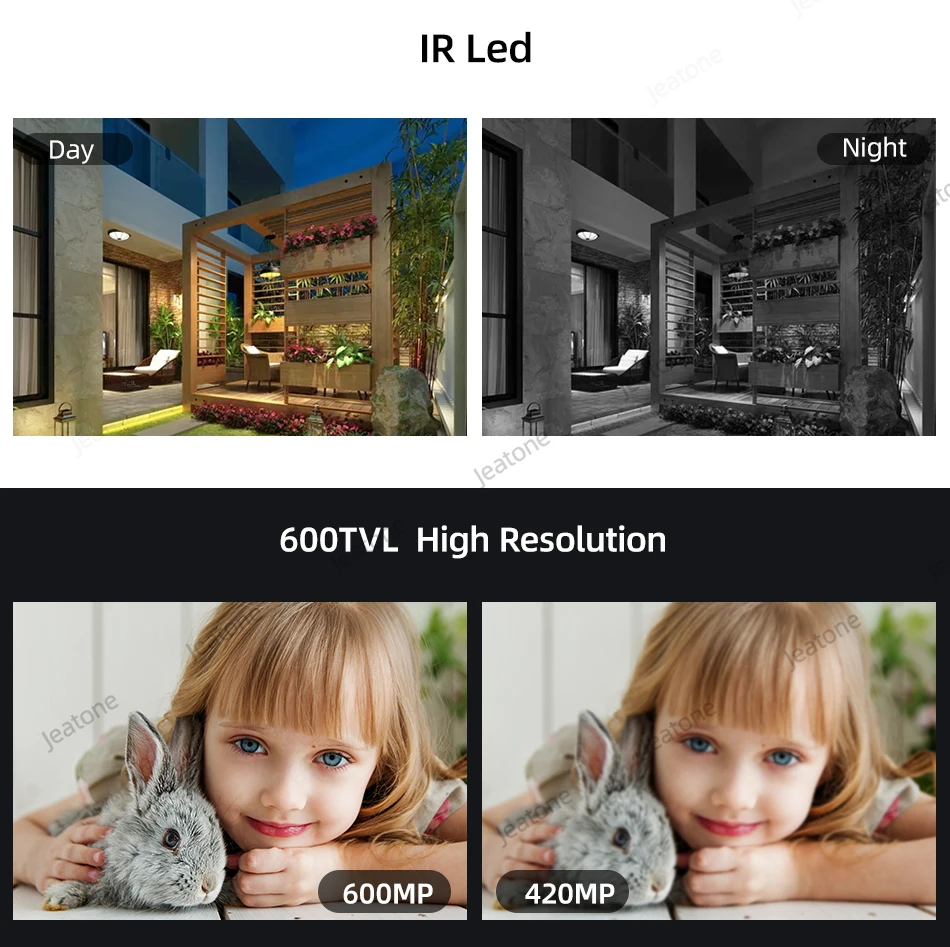 Наружная камера оснащена резиновым уплотнительным кольцом, нет возможности протекать. Он также может хорошо работать даже в плохую погоду.
