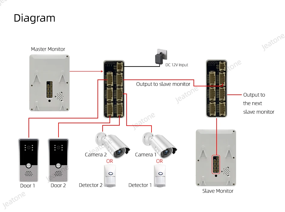Этот товар является Hands-free и доступен для двусторонней связи. Он поддерживает связь между внутренним монитором и наружной камерой, но также поддерживает связь между монитором и монитором.